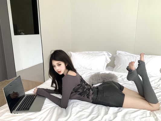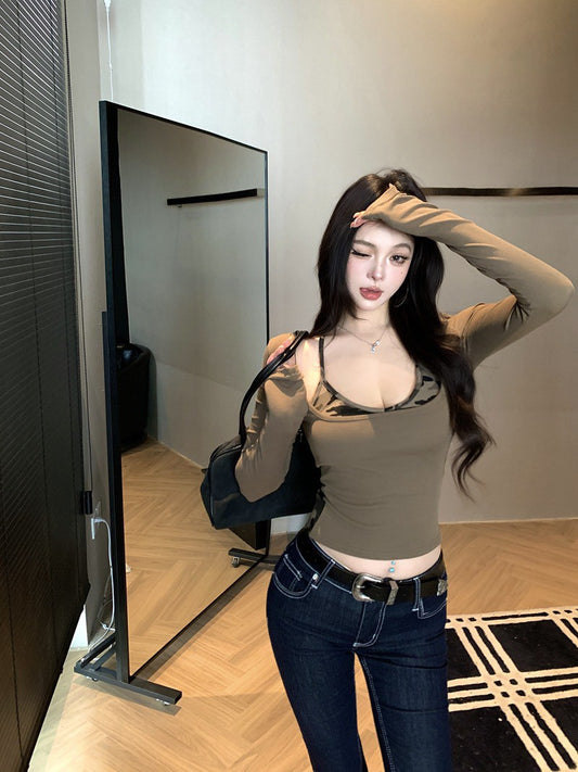 NA+ 迷人危險辣妹迷彩拼接假兩件上衣 灰