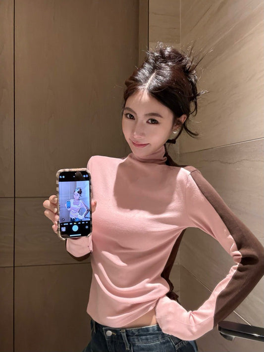 NA+ 冬日精品羊絨寬鬆拼色上衣 草莓巧克