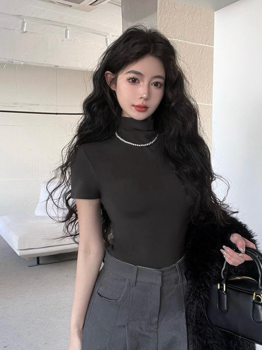 NA+ 基礎百搭半高領純色打底短袖上衣 淺灰/白/咖(加購不單售)