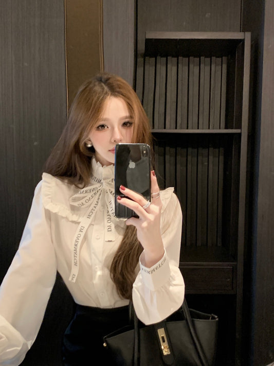 【Na+】法式 小香風蝴蝶緞帶襯衫