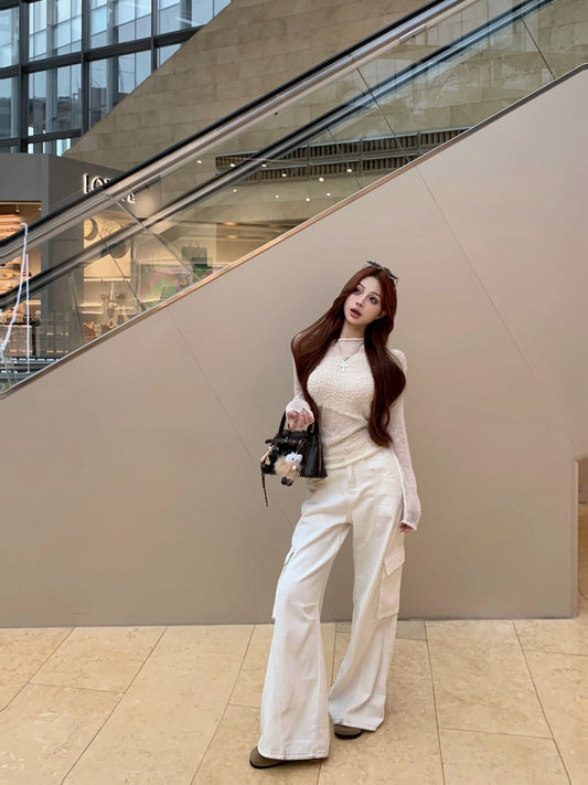 Na+ 不規則設計感針織背心 高腰通勤老錢休閒褲 卡其