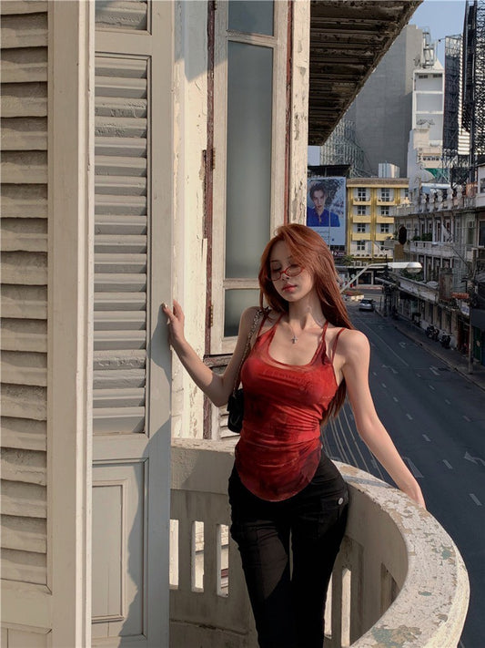 Na+ 辣妹夏日笑臉印花吊帶 開衫2件套