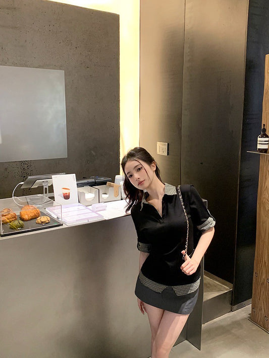 ''Na+''知性乖乖牌 polo拼色假兩件式簡約上衣