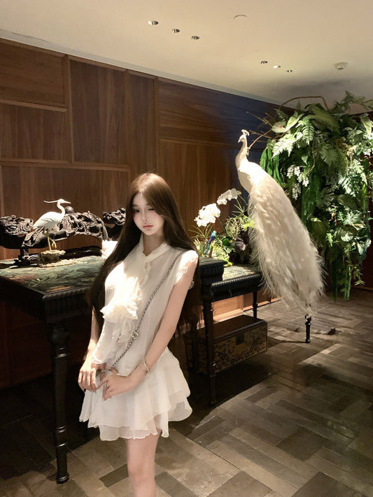 NA+ 南洋千金雪紡飄逸荷葉上衣 不規則半身裙 杏