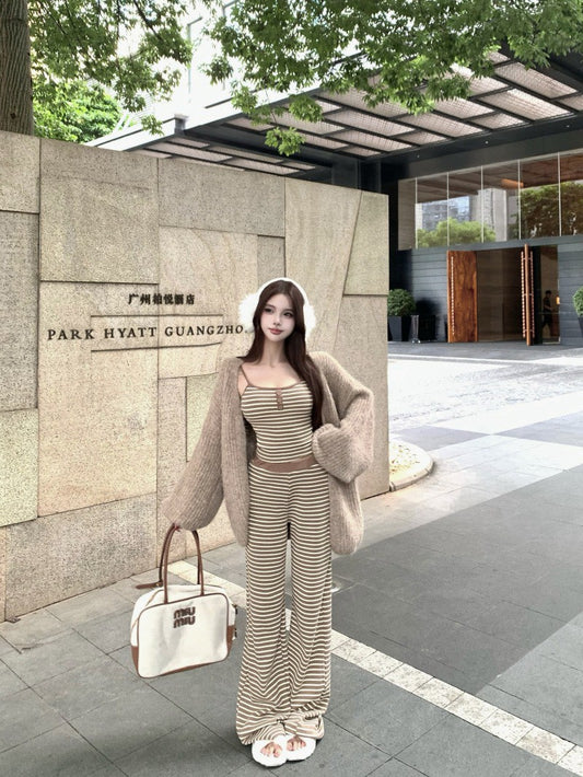 NA+ 初秋居家暖呼系列 奶茶條紋顯瘦三版選品