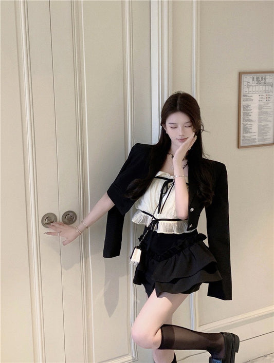 NA+ 超人氣主播透紗2件式上衣 荷葉半身裙 黑