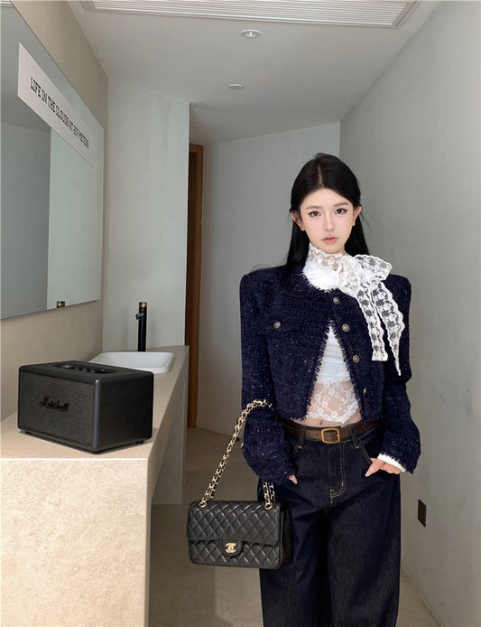 NA+ 甜姐高級搭小香藏青粗呢外套 高腰闊腿褲