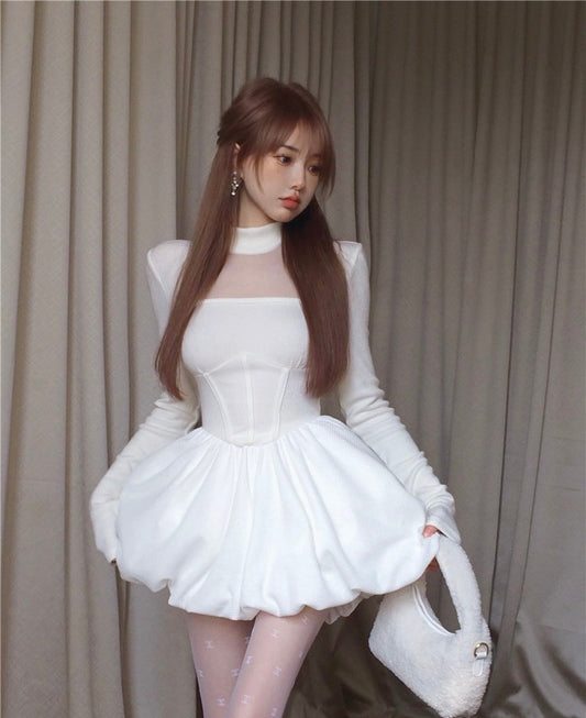 ''Na+''元英千金 透紗拼接縷空花苞生日裙 白