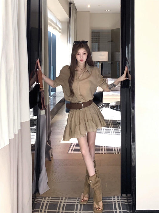 NA+ ROW率性通勤工裝襯衫裙 卡其