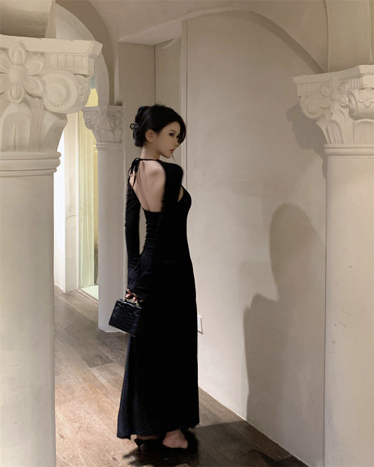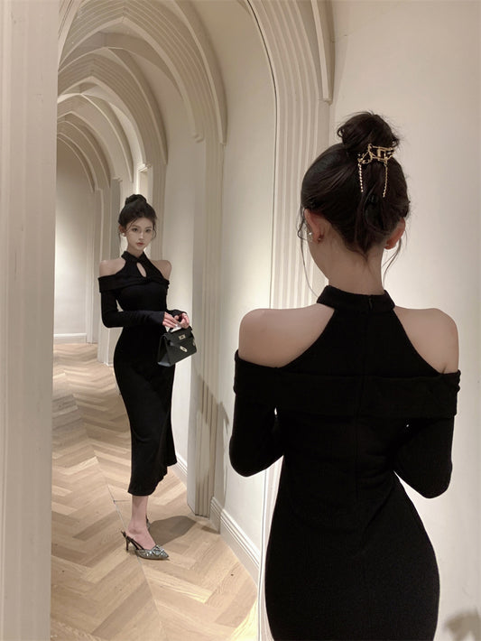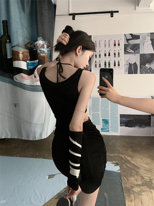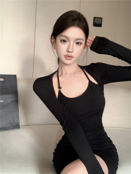 【Na+】御姐掛脖大U領包臀裙 黑