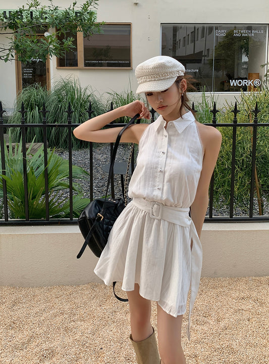 【Na+】春芳蕩漾背心式收腰垂墜連身裙 白