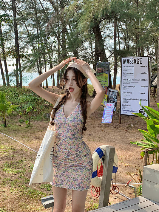 【Na+】波爾圖日記 歐美辣妹挖背碎花裙