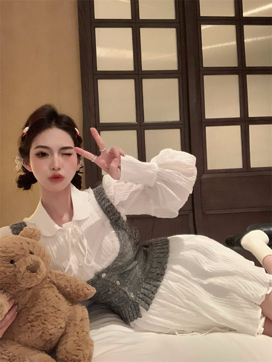 【Na+】肌理紋路宮廷綁帶蛋糕連身裙 針織背心