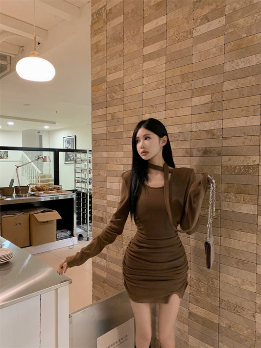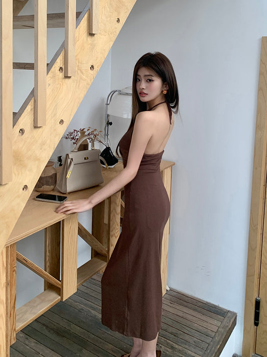 【Na+】御姐掛脖大U領包臀裙 咖