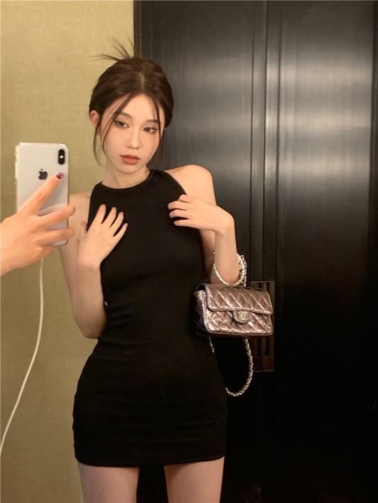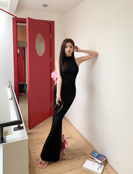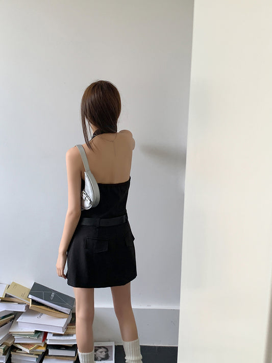 【Na+】掛脖挖背設計連身裙 黑色