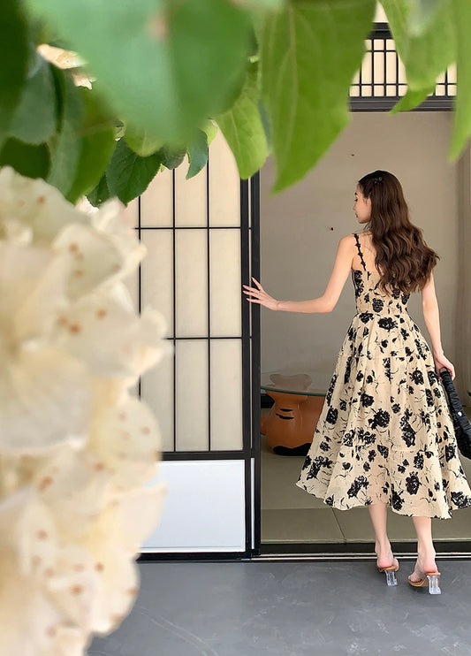【Na+】復古赫本 水墨印花馬甲連身裙