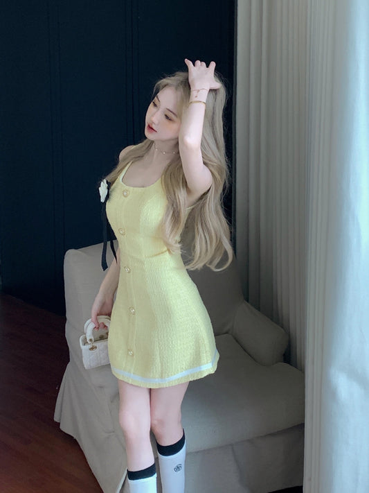 【Na+】奶黃小香編織感連身裙
