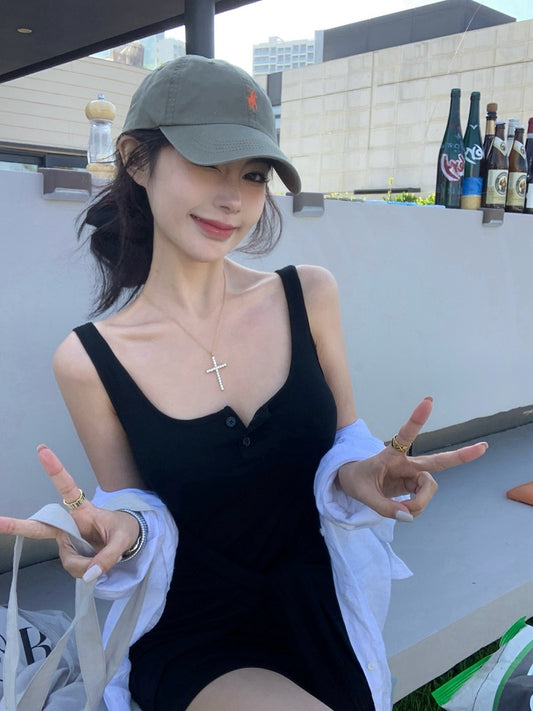 NA+ 高級感加分題 簡約修身開衩背心長裙 黑