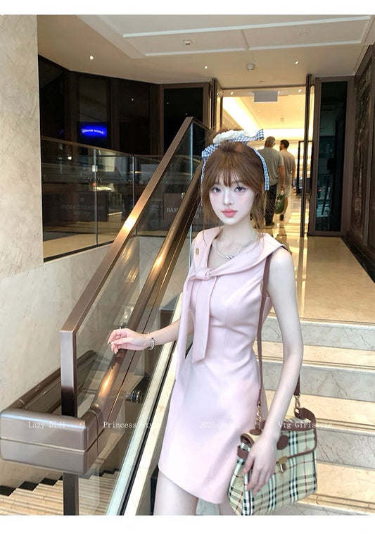 NA+ 愛神見習生 海軍領高定修身連身裙 格紋/粉