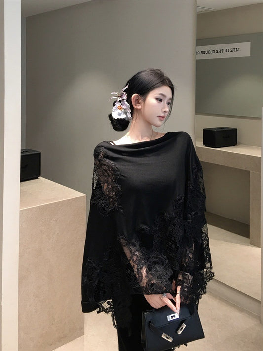 ''Na+''性感魅惑 蕾絲緹花披肩 背心連身裙 黑