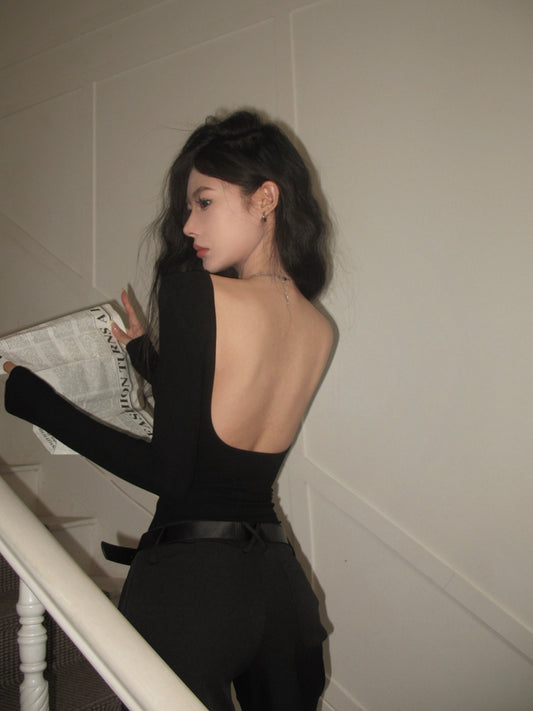 【Na+】歐美控必入 大美背顯瘦上衣 (連體衣) 黑