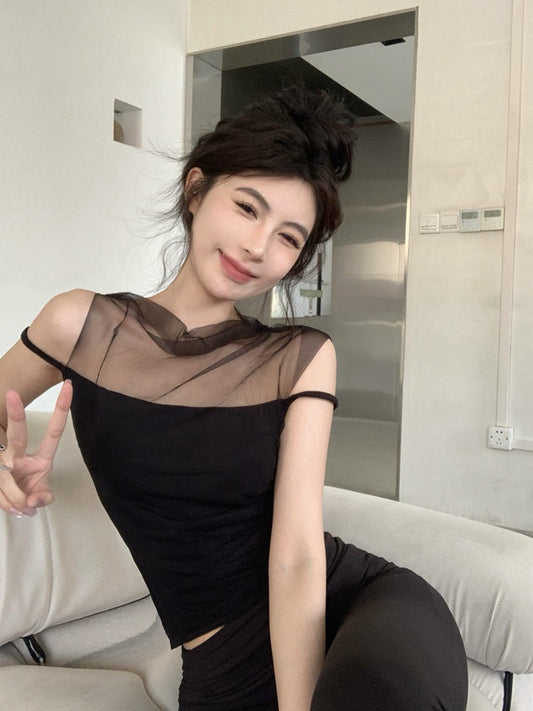 【Na+】微透視v領顯瘦面膜上衣 灰/黑/白