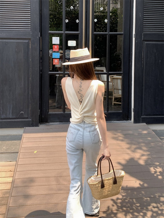 【Na+】夏日顯瘦扭結兩穿背心 杏