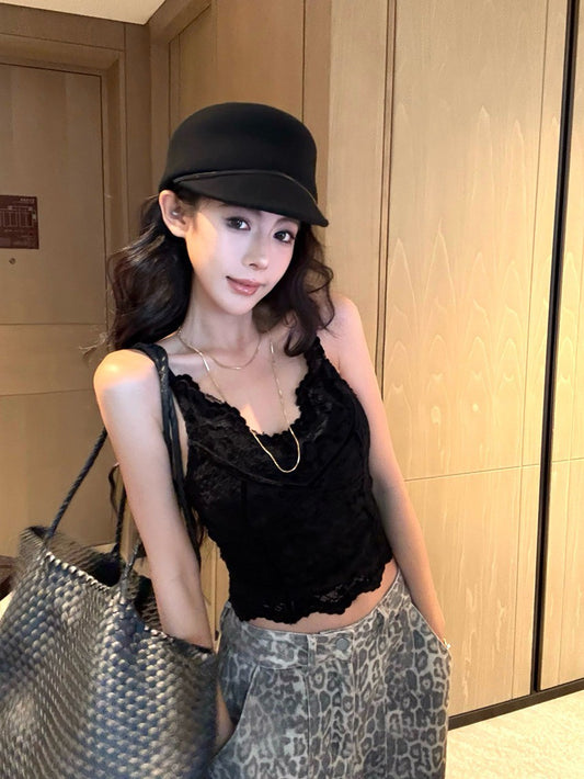 NA+ 純慾絲絨雕花打底修身背心 黑