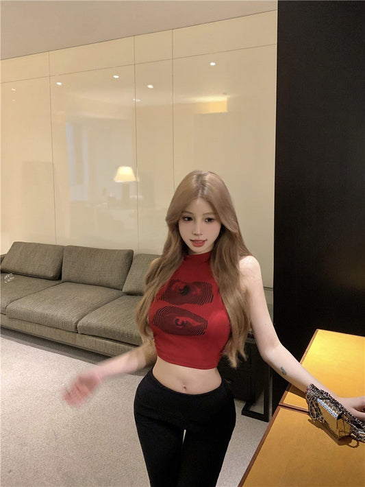 Na+ 辣妹夏日笑臉印花吊帶 開衫2件套