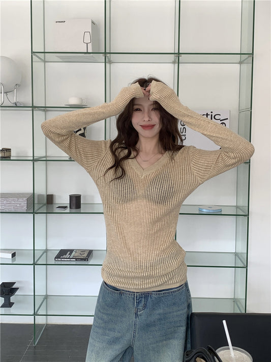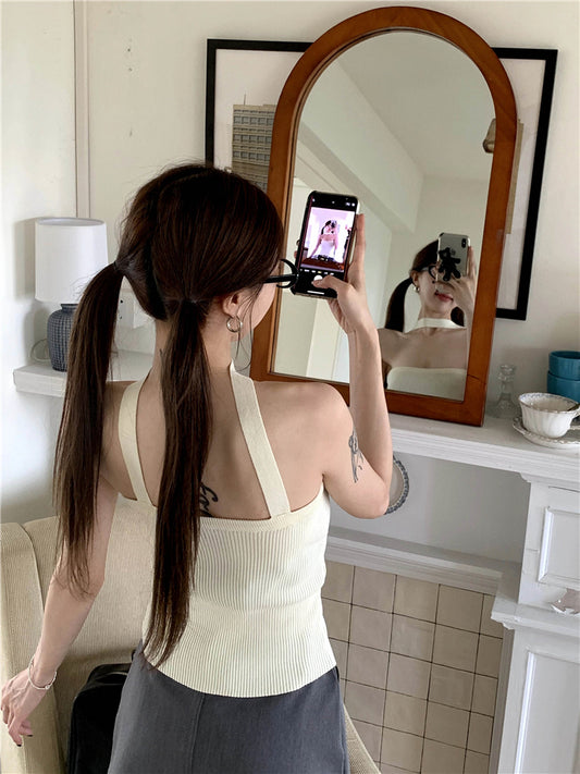 【Na+】純欲繞脖抹胸針織上衣 杏