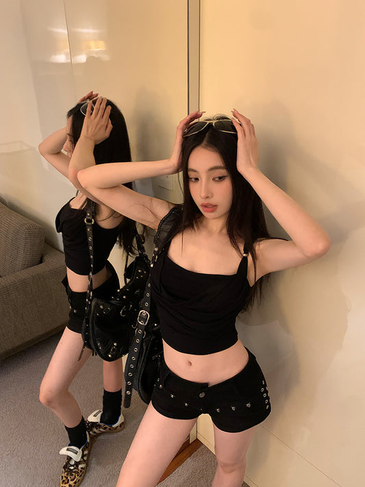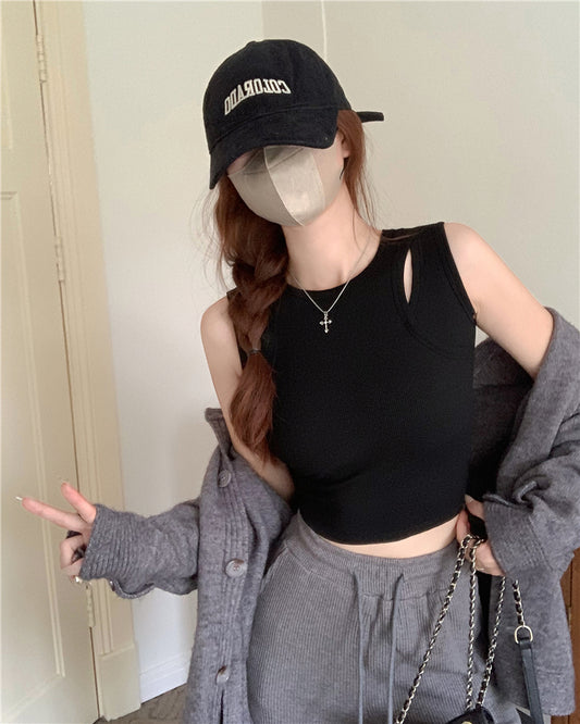【Na+】基礎百搭不規則雙肩設計背心 黑
