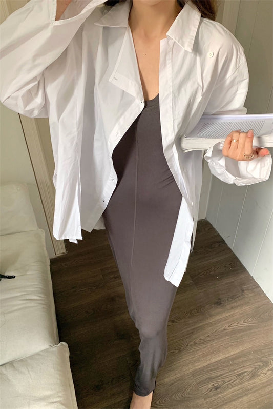 【Na+】衣櫥必備 寬鬆慵懶襯衫 白