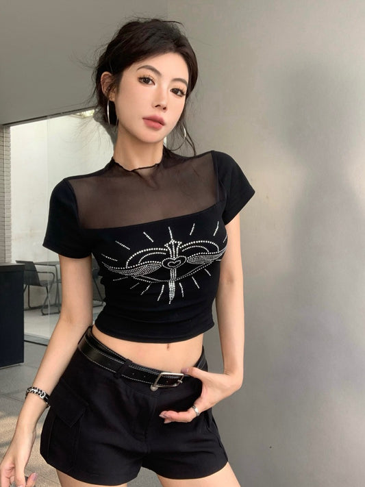 【Na+】拼接鑽黏愛心純欲透紗衣 黑/白
