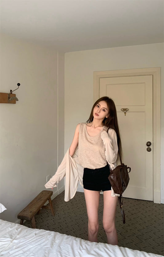 【Na+】寬鬆慵懶背心外套2件組 卡其組