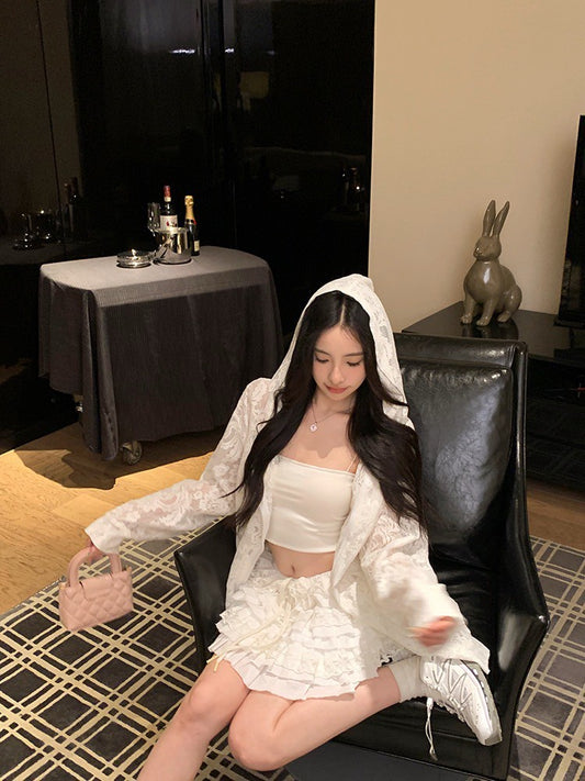 ''Na+''Cake stack氧氣少女 蕾絲連帽外套 蛋糕半身裙