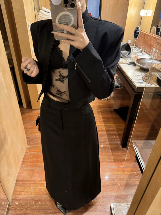 "Na+"文藝古典 法式廓形設計感西裝外套 半身裙