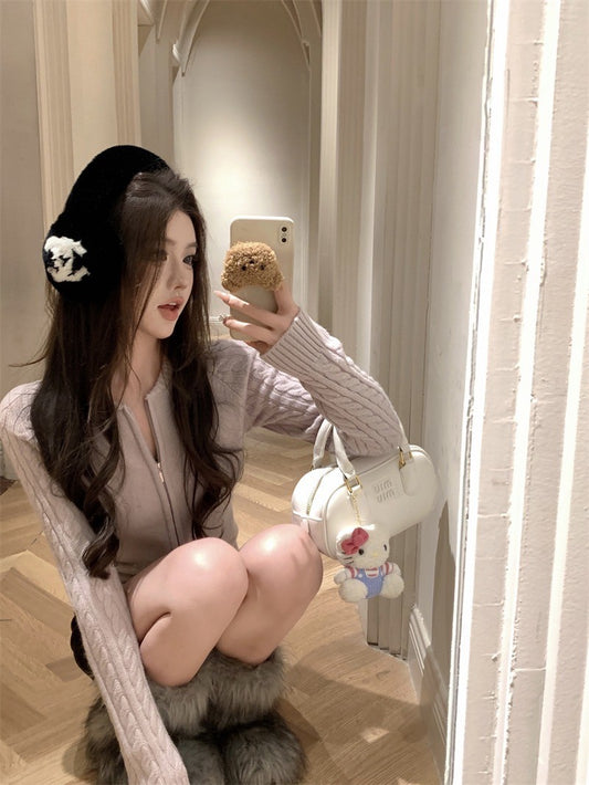 ''Na+''溫柔感 麻花針織雙拉鍊圓領外套