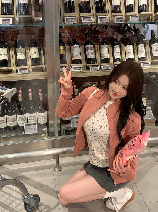 ''Na+''復古簡約 氣質淑女粉色外套 碎花打底上衣