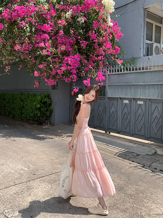 【Na+】浪漫假日 少女優雅收腰小粉裙