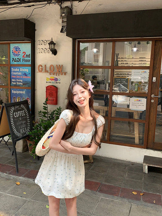 【Na+】趙露思同款方領娃娃收腰碎花洋裝
