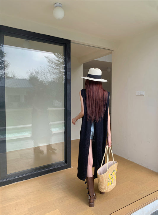 【Na+】度假百搭縷空疊穿開叉上衣 黑