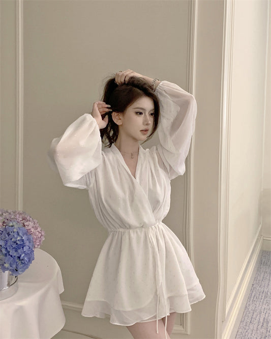 【Na+】月光夢露 白色閃鑽綁帶連身裙