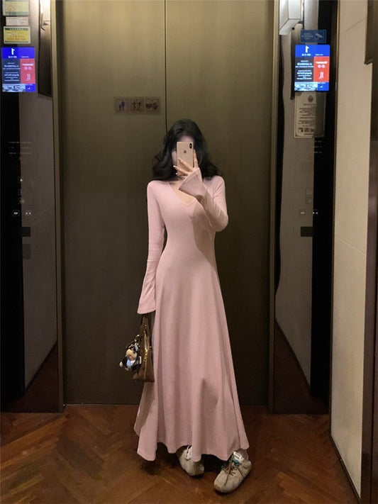 ''Na+''復古女伶一件可出門 V領魚尾裙擺連身裙 紅/淡粉