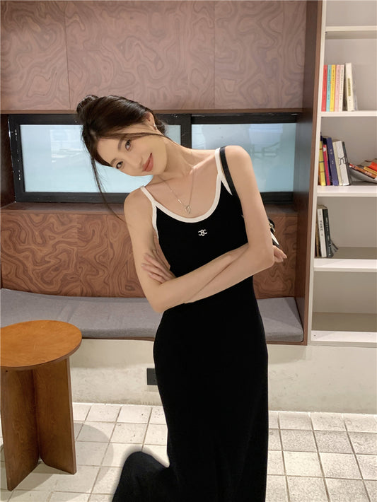 【Na+】春芳蕩漾背心式收腰垂墜連身裙 黑