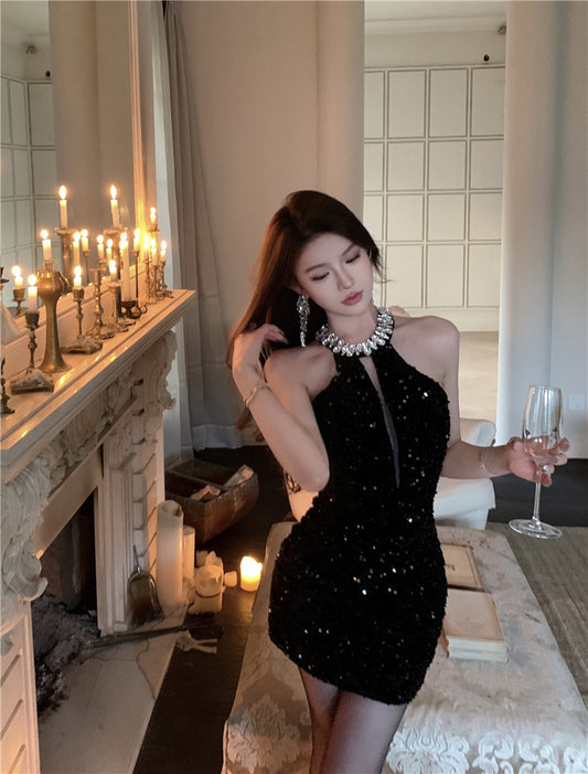 【Na+】重工閃珠繞脖 生日亮片小禮服
