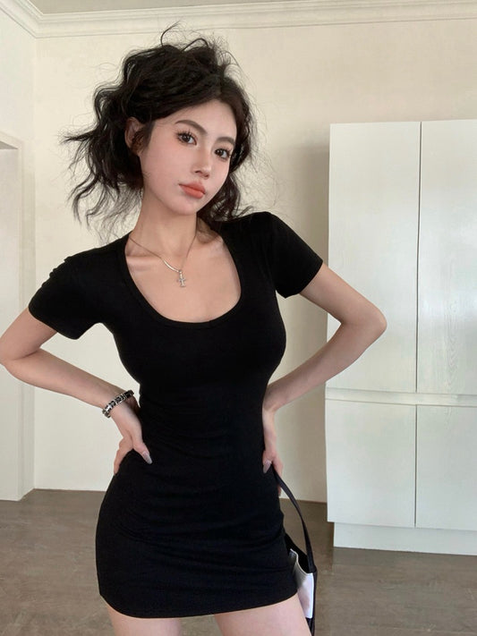 "Na+"法式高雅 氣質透紗純欲黑色連身裙 短款