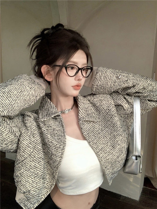 "Na+"休閒小香 經典毛編織短款修身顯瘦外套 白