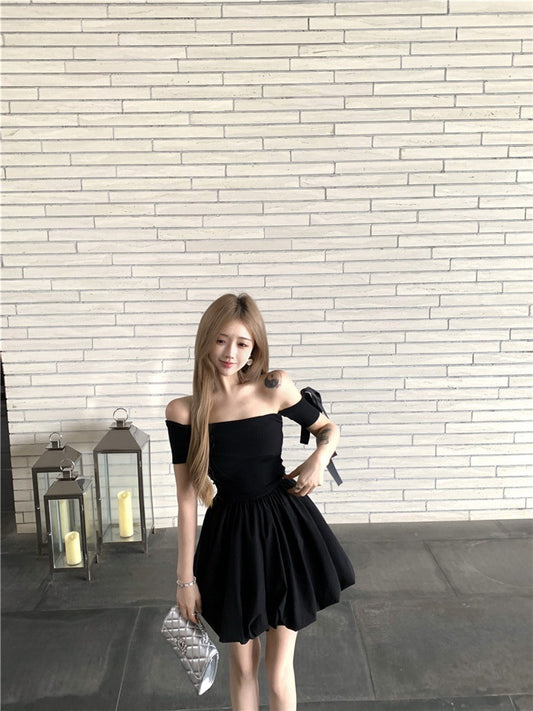 NA+ 公主sweetie甜美一字領花苞連身裙 黑