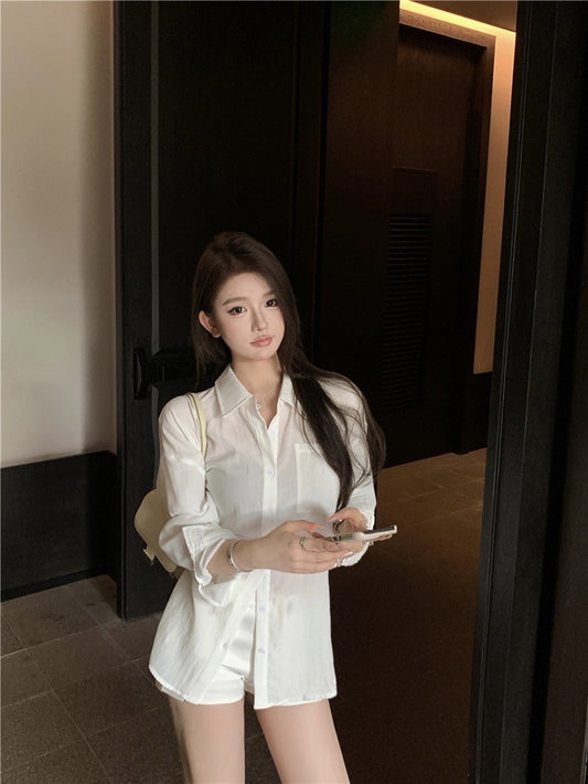 "Na+"悠然慵懶 百搭廓形口袋襯衫 白