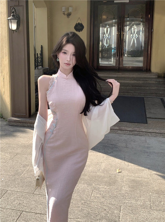 Na+ 微醺小館 復古夜上海改良式旗袍洋裝 淡粉